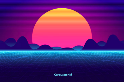 Retro wave atau synthwave art merupakan gaya ilustrasi yang terinspirasi dari estetika visual era 80-an. Oleh karena itu, gaya ini menonjolkan warna neon yang mencolok, gradien cerah, garis-garis futuristik, serta elemen geometris yang kuat. Selain itu, banyak desainer memilih gaya ini karena mampu memberikan kesan nostalgia, energik, dan futuristik secara bersamaan. Bahkan, tren ini terus berkembang, terutama pada desain musik elektronik, sampul poster, visual game, hingga konten media sosial.